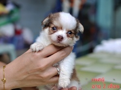 ชิวาวาขนยาว เพศผู้ เเฟนซี ขาว น้ำตาลช็อค อายุ 2 เดือน