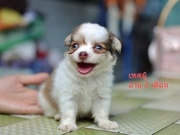 ชิวาวา ขนยาว เพศผู้ เเฟนซี น้ำตาล - ขาว อายุ 2 เดือน