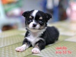 ชิวาวาขนยาว เเฟนซี ดำ - ขาว เพศเมีย อายุ 53 วัน