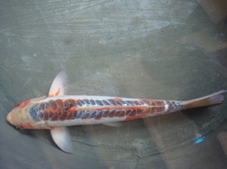 2. ซันเก้ เพศ F ขนาด 55 CM เป็นปลา บางกอกฟาร์ม 800 บาท (เป็นลูกนอกแท้แต่ตัวนี้ ครีบข้างลำตัวไม่ค่อยสวย)
