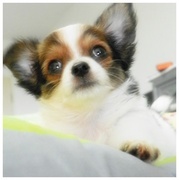 ชิวาวาเพศเมีย ขนยาว สีแฟนซี ขาว-น้ำตาล