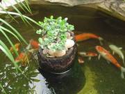 5. อัจฉริยะการสร้างสรรค์ ในการใช้วัสดุกรองแบบผสมผสานยึดหลักธรรมชาติ นอกจากวัสดุกรองจำพวกใยกรอง หิน ยังมีการใช้พรรณไม้น้ำเป็นวัสดุกรองเลียนแบบระบบนิเวศน์ธรรมชาติ ที่ช่วยปรับอุณหภูมิบ่อ ช่วยฟอกสารพิษแอมโมเนียมที่เป็นสาเหตุให้น้ำเสียและปลาป่วยได้