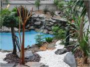 2. ออกแบบบ่อได้ทุกรูปทรง(ฟรีฟอร์ม) แบบบ่อสวยงามลงตัวกับพื้นที่ เลียนแบบธรรมชาติ ตัวบ่อฝังดินแต่งขอบบ่อด้วยหินชั้น