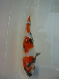 ตัวที่สอง โคฮากุ ตันโจ กินริน ปลาไทยลูกนอก ฟาร์มนครปฐม เพศไม่ชัดเจน ขนาด 35 ซ.ม. ราคา 1,200 บาท