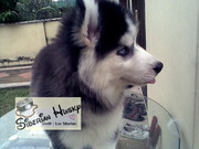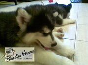 ขายลูกไซบีเรียนคู่สีดำตาฟ้า