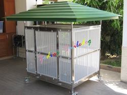 กรงสุนัขสแตนเลสขนาด 4 สแลท มีมุ้งลวด+หลังคา