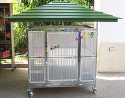 กรงสุนัขสแตนเลสขนาด 4 สแลทมีมุ้งลวด+หลังคา