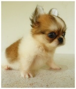 ชิวาวาเพศเมียขนยาวสายไต้หวันแท้ สีแฟนซี หัวโต หน้าหักปากสั้น(เพ็ดเต็มใบคร่ะ)