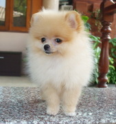 ปอมเพศเมีย 1 ตัว สีครีม วัย 2 เดือนกว่า วัยกำลังน่ารักซุกซน ร่าเริงแข็งแรง