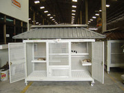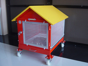 ดีไซน์เป็นรูปบ้านติดมุ้งลวดกันยุง สามารถเคลื่อนย้ายได้ ด้วยล้อไฟเบอร์ยูริเทน พื้นแสลท เสริมคานรับน้ำหนัก