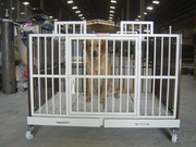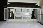 ระบบ Knock Down มีมุ้งลวดกันยุง หลังคา2ชั้นพับด้วย ระบบ CNC เป็นลอนคู่ ติดพัดลม ติดไฟ พร้อมสวิทซ์กันน้ำ มี4ล้อเป็น ไฟเบอร์ยูริเทน พร้อมแผ่นคั่นกลาง ซึ่งสามารถ เปิดเป็นประตูหรือถอดออกได้ เป็น 1 กรงยาวเหมาะสำหรับ สุนัขพันธ์Bulldog หรือสุนัขพันธ์เล็ก พร้อมถาดรอง2 ถาดมือจับเป็น สแตนเลสพร้อมกุญแจสับ และลูกกุญแจ