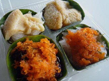 ข้าวเหนียวมูลหน้าต่างๆ เสริฟในกะทงใบตองน่ารับประทานมาก รสชาติอร่อยถูกใจ