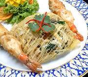 - สอนวิธีการทำให้แป้งแตกเป็นฝอยสวยงามรอบตัวกุ้งและผักต่างๆ