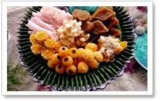 เครื่องไข่ ขนมตะโก้ ขนมชั้น ข้าวเหนืยวแก้ว ลูกชุบ ใส่ไส่ ขนมตาล เม็ดขนุน ฝอยทอง ทองหยิบ