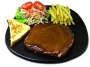 1. สเต็กหมูพริกไทยดำ ราคา 175 บาท/กก. (ใช้สันคอหมู ตัดหมูน้ำหนักประมาณ 120-130 กรัม/ชิ้น ต้นทุนประมาณ 24 บาท/ชิ้น)
