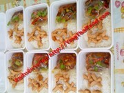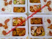-(กล่องพลาสติก 3 หลุมมีฝาปิด ข้าวสวย+กับข้าว 2 อย่าง+ไข่ดาว,ไข่เจียว,ไข่ต้ม,ไส้กรอกทอด,หมูยอทอด,กุนเชียงทอด) กล่องละ 45 บาท**(เมนูทะเลซีฟู้ด กุ้ง,หมึก,ปลา,ปู,หมูกรอบ,ปลากระป๋อง เพิ่ม 5 บ.)**