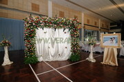 ซุ้มดอกไม้ถ่ายรูปหน้างาน , จัดโต๊ะลงทะเบียนประดับดอกไม้ , จัดโต๊ะ VIP พร้อมดอกไม้ , น้ำแข็งแกะสลัก 1 ก้อน , ดอกไม้ประดับโต๊ะน้ำแข็ง ,