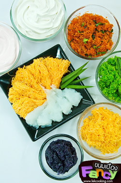 - สอนทำฝอยเงินและฝอยทองเองโดยไม่ต้องซื้อสำเร็จ เพื่อลดต้นทุน