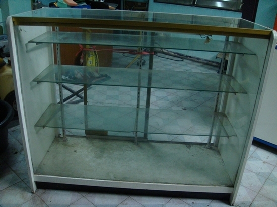ตู้กระจกโชว์วางของ 3 ชั้น มีไฟ กว้าง 50 เซนติเมตร ยาว 125 เซนติเมตร สูง 105 เซนติเมตร เป็นกระจกบานเลื่อนสวน 2 บาน 1500 บาท