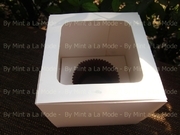 12) กล่องบราวนี่ทรงเตี้ย สี่เหลี่ยมจตุรัสสีขาว ขนาด 8 นิ้ว ราคาเริ่มต้นที่ 14 บาท