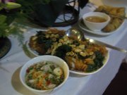 อาหารชุดที่ 3 ปอเปี๊ยทอด หน่อไม้ฝรั่งผัดกุ้ง ไก่อบยอกผัก หมูชาวสวน ต้ำยำขาหมู โกยซี่หมี่