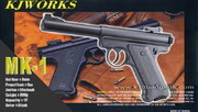 ปืนสั้น MK-1 จากค่ายKJworksรุ่นนี้จัดเป็นที่เน้นยิงแรงให้สะใจ ลากไกนิ่ม ไม่มีสดุด ไม่สบัด แต่อานุภาพของลูกที่วิ่งออกไปรุนแรงจริงๆ ใช้แก๊สแรงปานกลางวัดความเร็วได้เกิน425ฟุต/วิ เมื่อใช้แก๊สแรงเช่นแก๊สกะโหลก แก๊สไต้หวันอย่าง ET-1000 คงไม่ต้องวัดครับ ความเร็วเกือบ500ฟุต/วิ (ยิงลูกเหล็กได้)