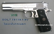 WE ..... COLT M1911 A1-SV สีโครเมี่ยมมันวาว เหล็กทั้งกระบอกแบรนด์ดังไต้หวัน(ไม่ใช่จีน) ระบบแก๊ส สไลด์โบแบ๊ค ระบบปฏิบัติการเหมือนจริงมากๆ ยิงแม่น แอคชั่นสวยงาม ***เป็นของไต้หวันแท้และใหม่100%***ราคาเพียง4100บาท