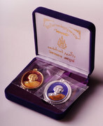 - เนื้อเงินหน้ากากทองคำ จำนวนสร้าง 79 เหรียญ ราคาบูชา 12,000 บาท