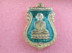 เหรียญหลวงพ่อทวดพิมพ์เสมาหัวโตเนื้อเงินกะไหล่ทองลงยาราชาวดีสีเขียวรุ่นสรงน้ำ มงคล88ปี2549วัดสำเภาเชย