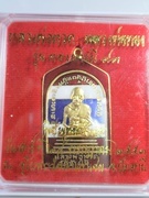 เหรียญหลวงพ่อทวดพิมพ์ห้าเหลียมเนื้อทองแดงลงยาสีธงชาติขอบสีแดงชุบทองรุ่นทองบารมี93วัด