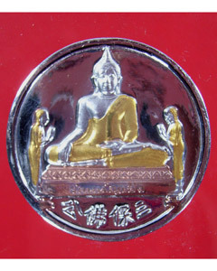 เหรียญหลวงพ่อโต วัดพนัญเชิงกรุงเก่า รุ่นสมปรารถนา เหรียญกลม เนื้อทอง ปี 2537 มี 2 องค์