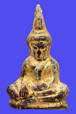 นี้เป็นพระท่ากระดาน พิมพ์ใหญ่ กรุศรีสวัสดิ์ กาญจนบุรี เนื้อชินตะกั่วสนิมแดง ศิลปะแบบอู่ทอง องค์ที่นำเสนอมีความคมชัดสมบูรณ์ คราบทองในกรุยังติดอยู่เกือบทั่วองค์พระ ส่วนที่คราบทองหลุดจะเห็นเนื้อสนิมแดงสวยงาม