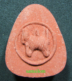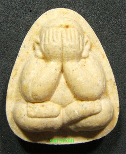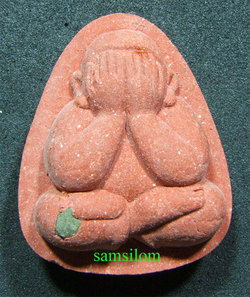 องค์นี้เป็นพิมพ์พระปิดตามหาลาภ ด้านหลังเป็น พ.พาน เนื้อผงแดง ด้านหน้ามีก้อนแร่ฝังอยู่ ไม่แน่ใจว่าหลวงปู่สร้างไว้เมื่อปีไหน แจกในงานอะไร แต่ได้รับคำแนะนำจากลูกศิษย์ที่วัดให้นำมาบูชาไว้ เน้นหนักไปทางด้านโชคลาภ ได้รับการปลุกเสกจากหลวงปู่เย็น หลวงปู่บุดดาแน่นอน นำไปใช้แทน พ. พาน ได้เลยครับ