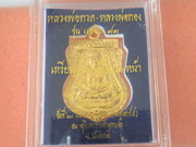 เหรียญพิมพ์เสมาหน้าเลื่อน2หน้าหลวงพ่อทวด-หลวงพ่อทองเนื้ออัลปาก้าผิวเปียกทองรุ่นแซยิด93เสาร์5