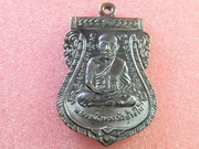 เหรียญพิมพ์เสมาหน้าเลื่อน2หน้าหลวงพ่อทวด-หลวงพ่อทองเนื้อทองแดงรมดำรุ่นแซยิด93เสาร์5