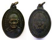 หลวงปู่เม้า วัดสี่เหลี่ยม เหรียญ(รุ่นแรก) เนื้อทองแดงรมดำ พ.ศ 2517