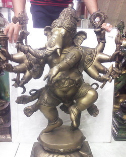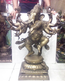 พระพิฆเนศ ปางนฤตยะคณปติ 10 กร (ปางแห่งการร่ายรำ) 1 ใน 32 ปางอวตาร เนื้อทองเหลืองอินเดียสูง 28 นิ้ว งานเกรดA องค์ใหญ่ สวยงามมาก ราคาบูชาถูก 35,000.- ราคานี้รับประกันถูกที่สุด