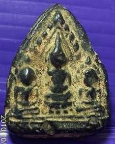 พระตรีกายหลวงปู่ทวด กรุเนื้อดินสีดำ ออกวัดปราสาทบุญญาวาส พิมพ์คมชัดหลังยันต์เก่าสวยมากค้ะ