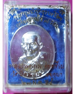 เหรียญรูปไข่ 7 รอบ หลวงพ่อเพิ่ม วัดป้อมแก้ว เนื้อเงิน พร้อมกล่องเดิมจากวัด