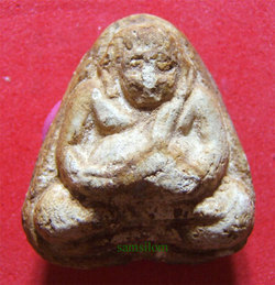 องค์นี้เป็นพิมพ์พระสังกัจจายน์ เนื้อขาว สภาพพอสวย สุดยอดแห่งพิมพ์นิยม อีกพิมพ์หนึ่ง ****พิมพ์พระสังกัจจายน์เป็นพิมพ์แห่งโชคลาภ เหมาะแก่การค้าขาย**** ในสมัย พ.ศ.2538-39 ยุคที่พระวัดประสาทเฟื่องฟู องค์สวยๆ เนื้อชมพู และเนื้อเขียวก้านมะลิ เล่นหากันถึงหลักหมื่นต้นๆ ตอนนี้สวยๆพิมพ์นี้ ต้องมี4-5พันบาทขึ้น แต่หาไม่ได้ง่ายครับ แถมเป็นพิมพ์ยอดนิยมทำเก๊อีก มากฝีมือจริงๆ มีออกมาหลายชุด จะสะสมเล่นหาควรระมัดระวังอย่างยิ่ง ปัจจุบันราคาตกลงมาเยอะ พอให้เก็บหาสะสมกันได้ องค์นี้ถือว่าพอสวยแต่เป็นพิมพ์นิยม หน้ามีรอยกะเทาะเล็กน้อย ถ้าไม่มีรอยกะเทาะองค์นี้ราคาไปไกลมาก เอาไปบูชาหรือเป็นองค์ครูไว้ศึกษา ไม่ต้องเอาองค์สวยครับ ประหยัดเงินไปได้เยอะ เก็บหาบูชาพระที่แปลก หายาก สักหน่อยได้ราคาดีกว่าเยอะครับ