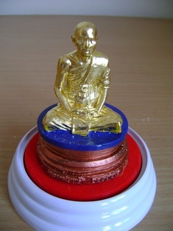 ขายพระบูชา หลวงพ่อพร้า วัดโคกดอกไม้ จ.ชัยนาท เนื้อทองแดงรมดำ ปิดทอง สภาพสวย