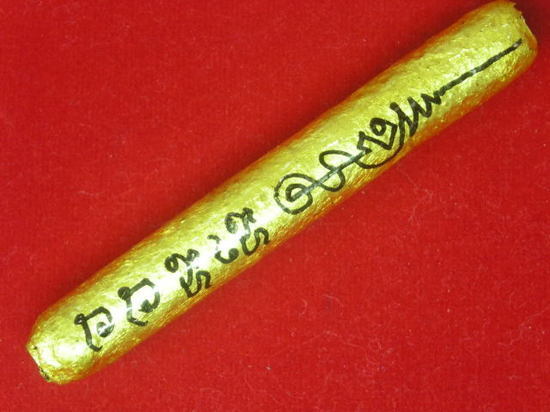 ขนาดยาว 3 นิ้ว จารมือเอง แล้วถักเชือกคลุกผงลงรักปิดทองแท้