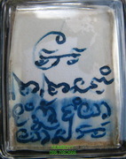 ด้านหลังเป็นลายมือของหลวงพ่อมีที่จารพระคาถาป้องกันอาวุธพันชนิดครับ "อะ โจ โจ นะ จัง ทัง พัน ทัง ยา ยา นะ อะ"