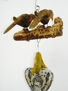นกสาริกาคู่บูชาไม้กาฝากมะยม หลวงพ่อสง่า วัดบ้านหม้อ ราชบุรี สร้างน้อย หายากมาก งานแกะมือสุดคลาสสิค จารอักขระเต็ม ค้าขายเยี่ยม
