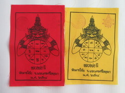 ผ้ายันต์พิธีสุริยุปราคาปี 2538 หลวงพ่อมี วัดมารวิชัย อยุธยา มาเป็นคู่ ขนาดกว้าง 5 นิ้ว สูง 6 นิ้ว (ขนาดต่อ 1 ผืน)สำหรับผู้ที่ดวงตกบูชาพระราหูเสริมดวงดีมากครับ