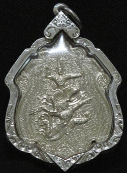เป็นเหรียญที่สวยและดีที่สุดของหลวงพ่ออีกเหรียญหนึ่ง ด้าน หน้าเป็น พระนารายณ์ ทรง กระบี่ยุทธ (หรือหนุมาน) ลูกพระพายที่เขี้ยวแก้วสันหลังเพชร ไม่มีวันตาย รวมกำลัง กับพระราม ผู้เป็นใหญ่ เป็นแม่ทัพ สยบศึก ล้อมรอบด้วยยันต์สำคัญ ที่เกี่ยวกับ มหาอำนาจ มหาปราบ มหาระงับ ทั่วทั้งเหรียญ ไม่มีที่ว่าง ด้านหลังมีองค์ หลวงพ่อ นั่งเป็นประธาน พร้อมด้วย ยันต์เกาะเพชรถอดรูป ยันต์ มหานิยม ยาตรา มหา จินดามณี ยันต์หนุนชะตา ยันต์ค้ำดวง ยันต์คูนดวง กันภัย 8 ทิศ ทั้งหมด ลงเป็นอักขละมอญ และมีภาษาไทย หัวใจ แห่งความ ดี ที่ทุกคนควรต้องมี เป็น คำสอนชั้นหัวกระทิ ของหลวงพ่อ ที่ว่า “ศีล สติ ” เตือนใจให้ทุกคน ที่เป็น ศิษย์หลวงพ่อต้องมี ทำอะไรให้ครอง สติให้มั่งคงก่อนเสมอ คิดอะไรก็ให้มีสติรอบรู้ตัวทั่วพร้อม และให้มีศีล เป็นปกติวิสัย ให้ทุกคนยึดเอาเองว่า จะอาราธนาศีลติดตัวกี่ข้อ จะข้อ 1 ข้อเดียว ห้ามฆ่าสัตว์ หรือจะข้อ 2 ข้อ 3 ข้อ 4 ข้อ 5 ตามแต่ใครจะรักษาได้ข้อไหนก็ให้ เจริญข้อนั้น ถ้ามีโอกาส มากเวลาเอื้อก็ให้ ถือศีล มากขึ้นตามลำดับ เท่านี้ ก็เป็นการทำดีแล้ว เกิดมา เป็นมนุษย์ พบพระพุทธศาสนาเป็นโอกาสที่ดีวิเศษ ที่สุดแล้ว หลวงพ่อบอกให้ทำดีไว้ คิดไตร่ตรองเองว่า อะไรดี อะไรชั่ว ให้ทำดีให้มากๆ ทำชั่วให้น้อยๆ ไม่ทำเลยยิ่งดี คนที่ทำดี คิดดี พูดดี ทำดีตามที่โอกาส อำนวย ความดี รีบทำนะลูกนะ ทำดีไม่สูญหาย กี่แสนชาติกี่ ล้านภพ ความดีก็ยังอยู่ เหรียญนี้ ออกแบบโดยศิลปิน ชั้นครู ลูกศิษย์ของหลวงพ่อ ข้อให้ผู้ใช้เหรียญนี้ทุกคนมีแต่ความ สุข ความเจริญ ยิ่งๆขึ้นไปโดยเร็วพลันเทอญ พระรามชนะใจ ขุนกระบี่หนุมานฉันได พระรามชนะพญายักษ์อย่างทศกัณฐ์ ฉันใด ลูกศิษย์หลวงพ่อ ต้องชนะ อุปสรรค์ ขวากหนาม ทุกอย่างฉันนั้น