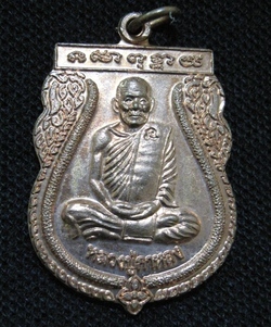 เหรียญรูปเหมือนเสมาหลวงปู่กาหลงเขี้ยวแก้ว หลังยันต์พญาหมูพลิกแผ่นดิน