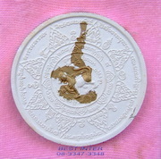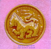 ด้านหลังเป็นสิงห์เล็กล้อมรอบด้วยยันต์และกลีบบัว 8 กลีบ