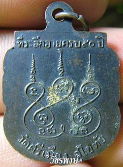 ทองคำเปลวที่ด้านหลังเหรียญ ท่านเป็นอาจารย์ของหลวงพ่อห้อม