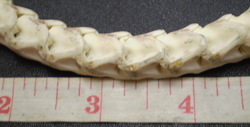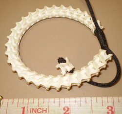 กระดูกงูเหลือม นำมาถักกับเชือกหนัง เป็นกำไลข้อมือ รูดเข้าออกได้